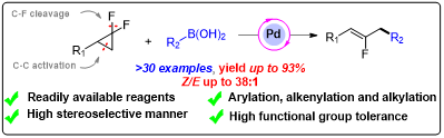 Research Focus: Develop new synthetic approach cross-coupling reactions catalysis of gem-Difluorinated Cyclopropanes toward synthesis C–C bond-formation {C(sp3)–C(sp)/C–(sp2)/C(sp3)} as well as regio- and enantioselective studies.