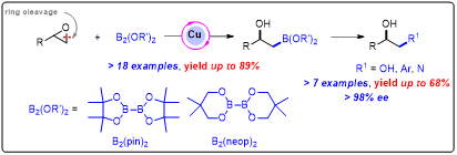 Research Focus: Catalytic strategies of copper catalyst in organic synthesis of β- and γ-hydroxyl boronic esters from epoxides and their applications derived possibilities in further organic reactions. Additionally, palladium catalyst to synthesize 2-fluorinated allylic scaffolds via C–C bond activation/C–F bond cleavage.