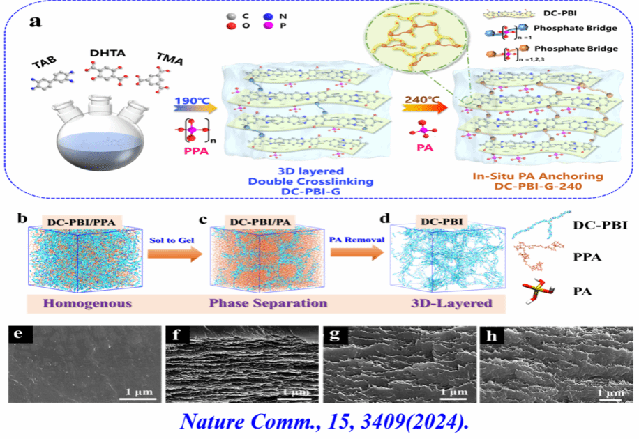 图13. 构建耐高温双交联三维(3D)片层结构凝胶态PBI质子交换膜