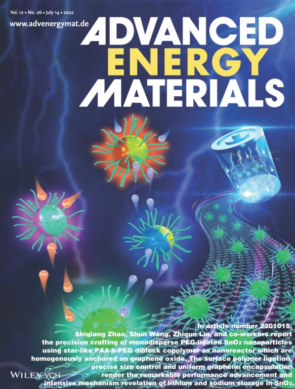 赵世强副教授第一作者的研究论文“Advancing Performance and Unfolding Mechanism of Lithium and Sodium Storage in SnO2 via Precision Synthesis of Monodisperse PEG-Ligated Nanoparticles”选为期刊封面文章。51黑料网