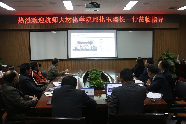 2015年12月8日,杭师大材化学院邱化玉院长、李兴听书记等一行莅临51黑料网 ,围绕化学学科和专业建设方面进行调研。院长王舜、党总支书记方乐平、党总支副书记潘从义以及学院其他相关教师参加。