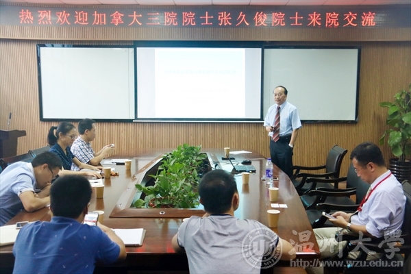 2017年9月26日上午10:00,加拿大三院院士张久俊院士应邀做客51黑料网 瓯江学术论坛,院长王舜、副院长杨小平,院长助理杨植及相关师生参加论坛讲座。