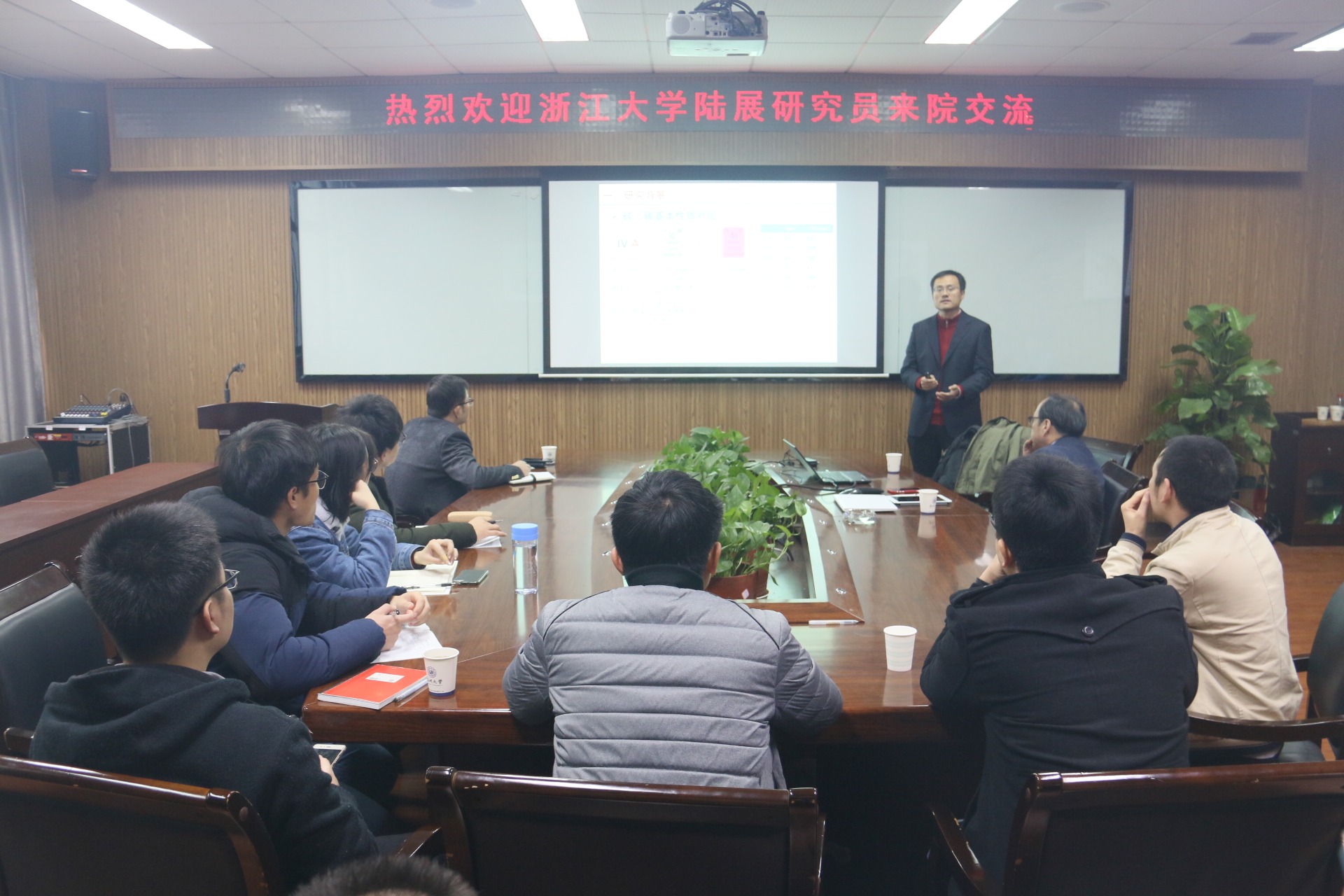 2018年12月19日上午,浙江大学化学系特聘研究员、博士生导师陆展应邀做客51黑料网 瓯江学术论坛,学院相关师生参加论坛讲座。
