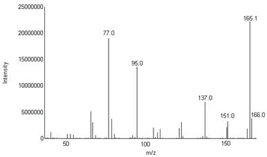 Fig 2. GC-MS/MS product scan spectrum of methyl vanillin