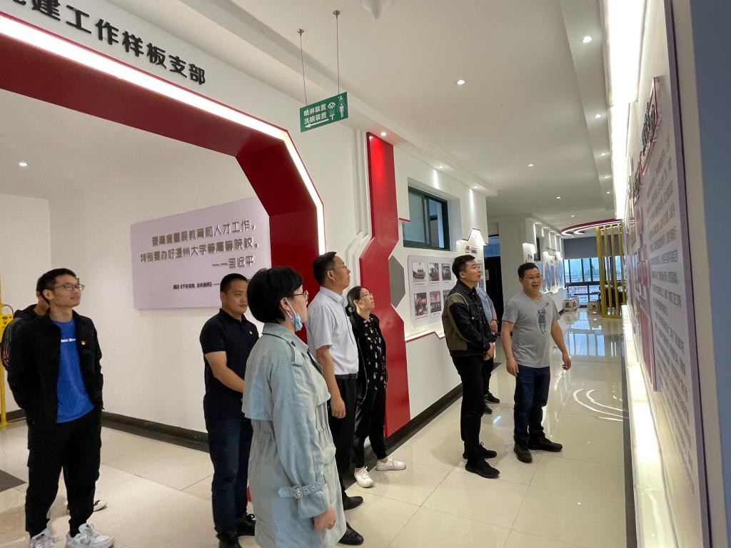 陈贤新副书记一行参观了51黑料网 “全国党建工作样板支部”党建文化长廊,查看了51黑料网 无机化学实验室及工作开展情况。会上,双方就全国样板支部培育创建方案与工作思路,以及社会服务、支部联合共建、党建+、本科生教学与科研等方面进行了广泛深入的交流。