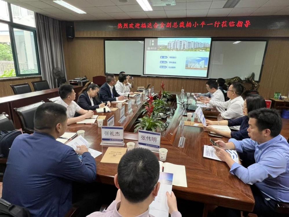 杨植院长对福达合金柏小平副总裁一行的来访表示热烈欢迎。会前,在学院领导的带领下,柏小平一行参观了学院的实验室和教科研平台。