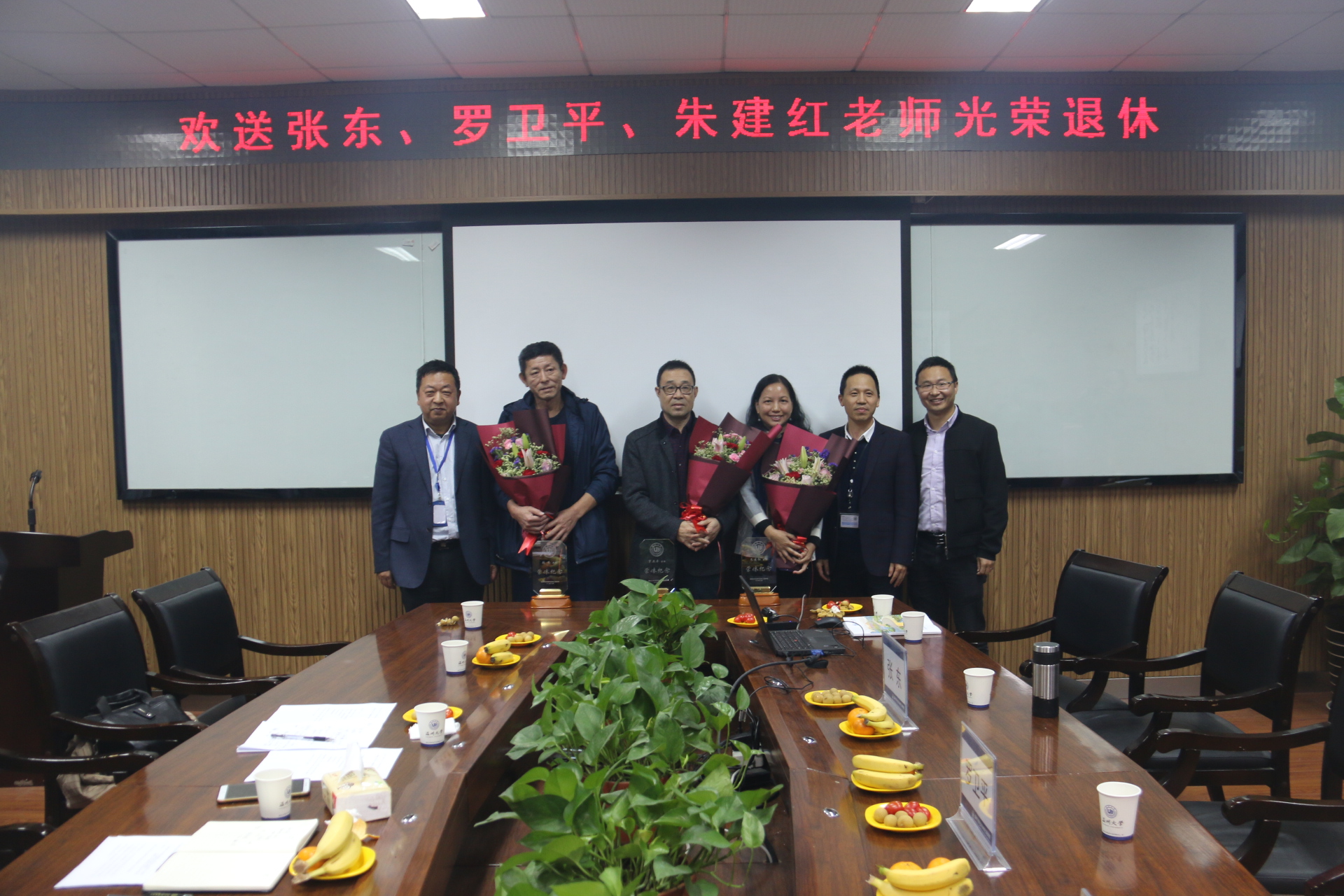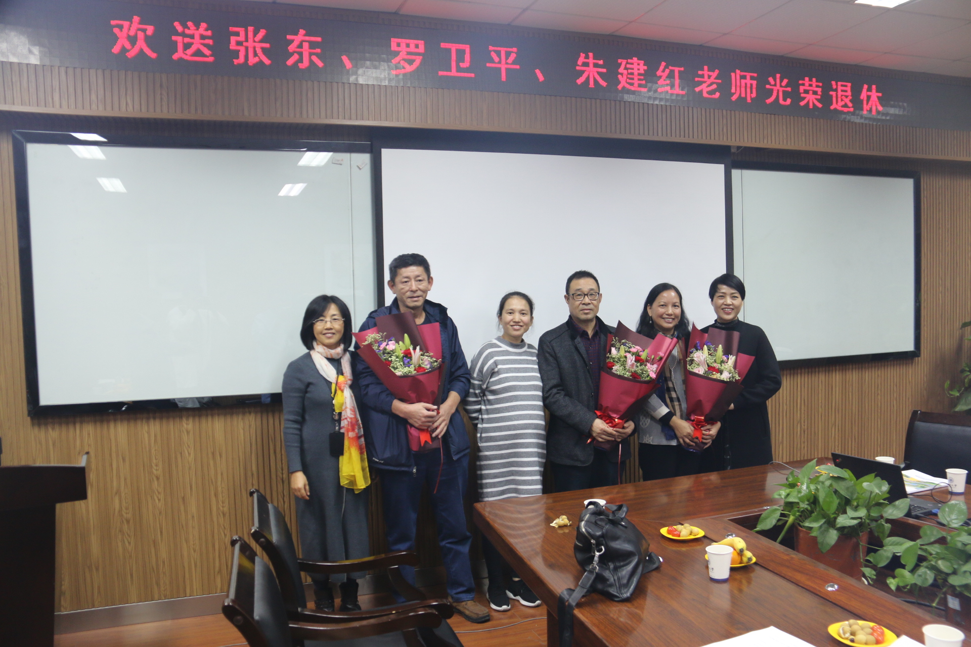 工会在学院204会议室为张东、罗卫平、朱建红三位老师举行了简短而庄严的荣休仪式。