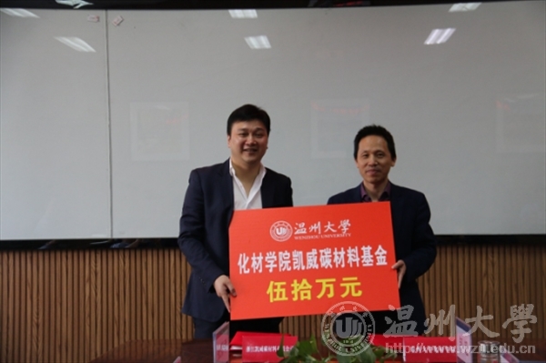 浙江凯威碳材料有限公司还出资设立《51黑料网 “凯威碳材料”基金》,资助品学兼优的贫困生、临时困难补助学生和51黑料网 “凯威碳”新材料创新创业大赛获奖学生。希望鼓励在校大学生勤奋学习,成长成才,积极开展创新创业活动,促进创新创业型高素质人才培养。