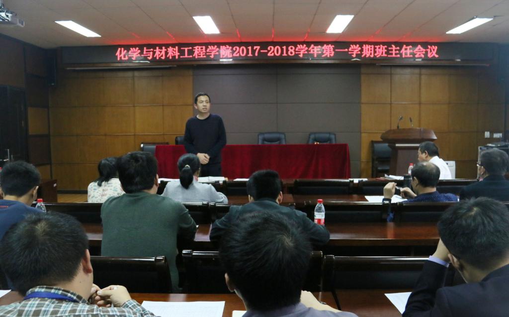 召开了2017-2018学年第一学期班主任会议。学院党总支书记方乐平、党总支副书记潘从义、学生科副科长易招娣、研究生辅导员邹涌彬以及学院全体班主任参加了本次会议。会议由党总支副书记潘从义主持。