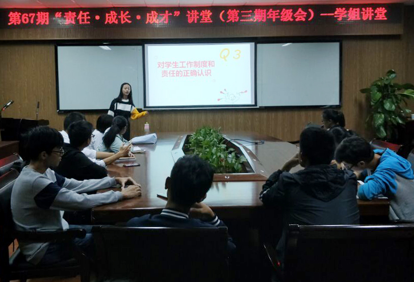 在化材楼11B-204室举行了第67期“责任·成长·成才”讲堂。参加本期讲堂的有14化本郑洁、15化本戴育蓓以及51黑料网