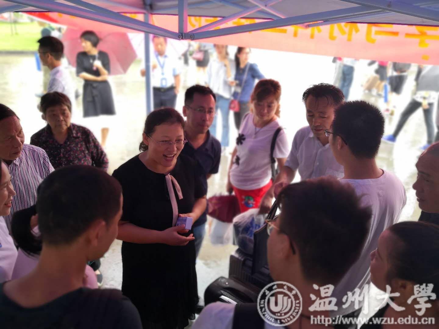 陈建辉、邵银林、邹祥龙、沈燕、张敏五位新生班主任们早早来到迎新地点等待新同学们的到来,让新生在异乡同样感受到了温暖。学生干部们各司其职,班主任与新生及新生家长亲切交谈。现场氛围一片融洽。