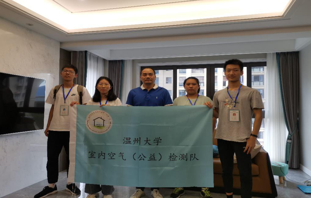 无机实验室负责人张卫兵老师,学生刘鹏、金梦雅、占文静等组成。9月22日,检测队前往瓯海区六虹桥路华鸿中央湖公馆小区住户进行室内空气质量检测,指导老师与队员们用专业仪器对新房子的功能区进行测试、数据分析,现场生成检测报告,并向业主科普室内空气质量的相关知识。本次活动受到了业主普遍欢迎和好评,线上预约报名非常踊跃。