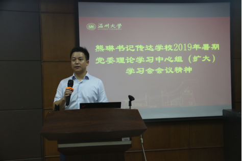 会议伊始,熊琳书记就我们学院暑期工作进行了回顾,特别介绍了学院在科研建设、专业建设、人才引进、党建等方面工作的开展情况,并对暑期在岗工作的教师表示感谢。同时,熊琳书记也向与会老师传达了学校2019年暑假党委理论学习中心组的会议精神。