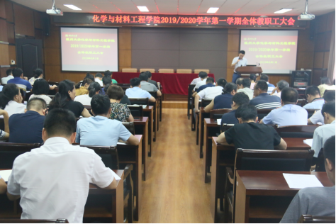 最后,王舜院长作了名为“齐心协力、共创化材美好未来”的学院工作报告,对我们学院2018年的总体工作进行了回顾,并希望各位老师在新学期能群策群力,在人才工作、学生工作、科研工作、团队建设等方面努力奋进,为化材美好未来努力。