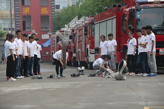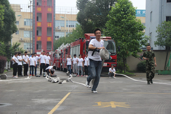 队员们集合不到5分钟,天空便下起了小雨,但是这也并不能阻挡队友们的满腔热情,纷纷表示不用停止训练,幸运的是,雨下了5分钟便停了,训练照常进行。消防官兵拿来了几捆水管后,便亲身示范如何快速又有效率地拉开水带,并且将两盘水带连接,所花时间竟然不到10秒钟,队员们看到后都十分佩服,抢着上前体验。对队员们不懂的地方,消防战士都一一耐心予以解惑。拉水带只有亲自体验才能知道它的不易之处,而且连接水带也不像看到的那么容易,队员们由于没有掌握要领,个个都显得既吃力又笨拙,不时的引起队友们的笑声。活动在愉悦的气氛中结束了。