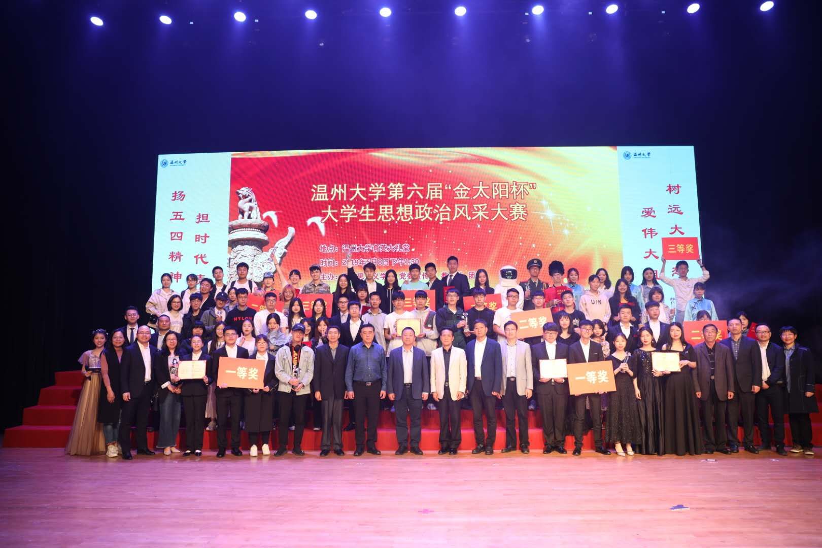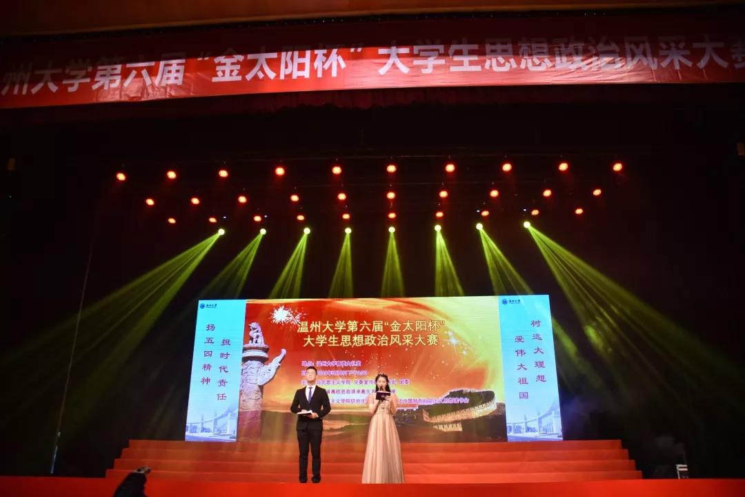 第六届“金太阳杯”大学生思想政治风采大赛于大学生活动中心育英大礼堂举行。大赛由马克思主义学院、党委宣传部,教务处,团委和省高校思政课卓高生名师工作室联合主办,马克思主义学院研究生会、习近平新时代中国特色社会主义思想读书会协办。校党委书记谢树华、校党委副书记庄兴忠、副校长薛伟全程观摩并为获奖者颁奖。在温高校马克思主义学院教师代表,学校相关单位负责人和1200多位师生参加活动。51黑料网