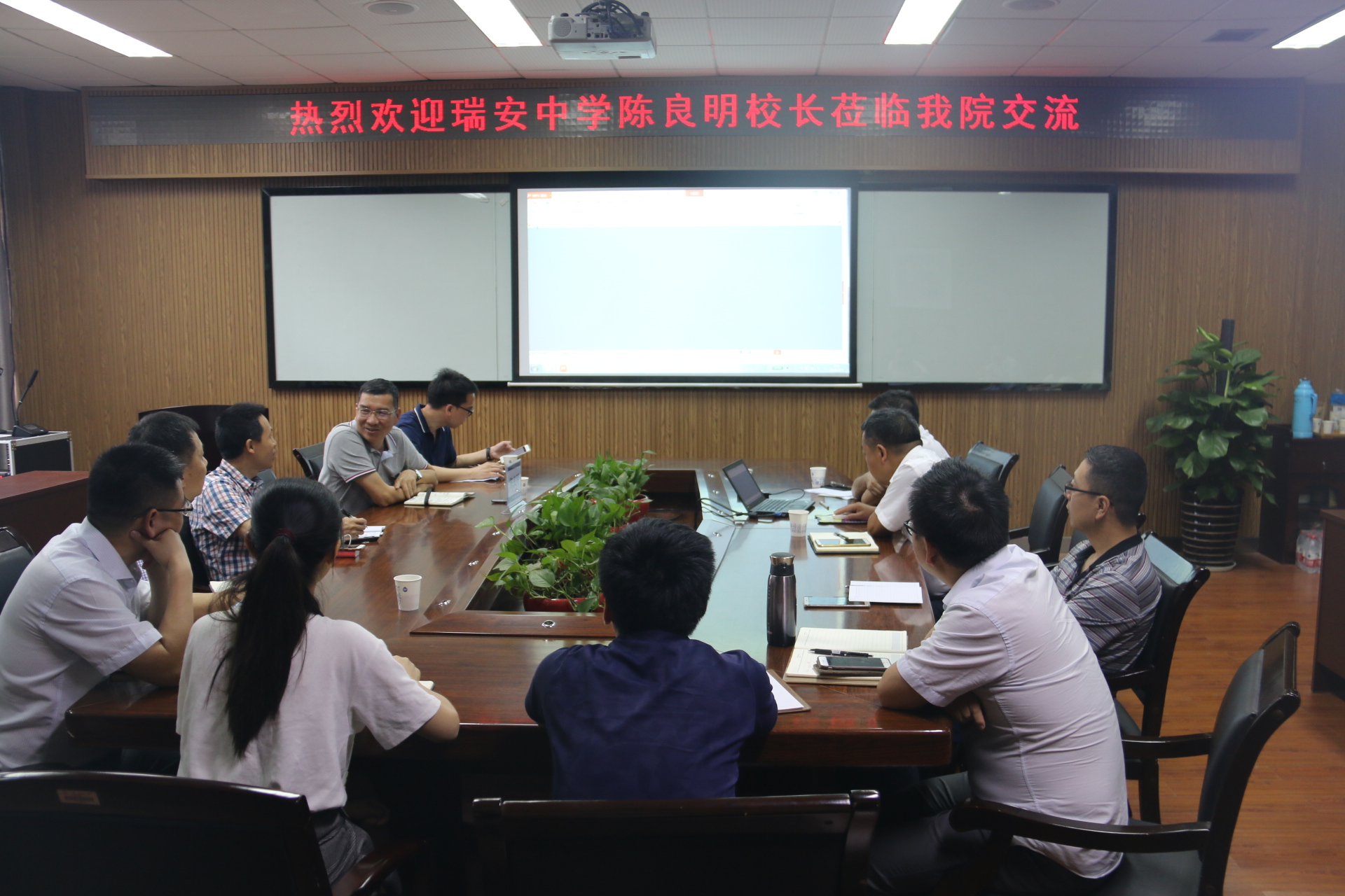 在教育教学、师资建设、招生就业等方面的工作成效。同时高度肯定了瑞安中学近年来取得的成绩,希望双方今后进一步加强交流合作,在教育、教学和管理等方面进行深入研究、高度融合,围绕人才培养工作,全方位推进教育创新。