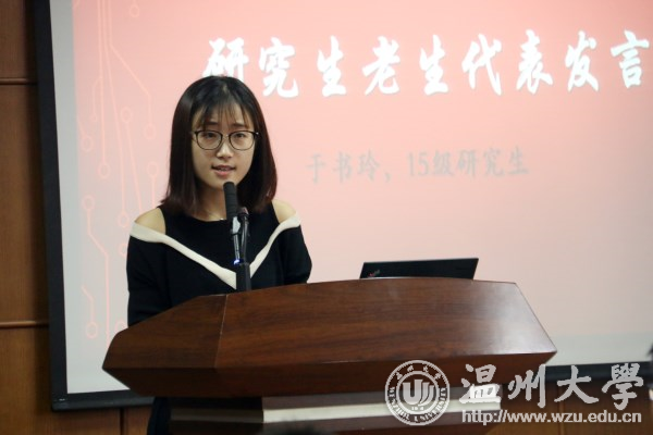 开学典礼在庄严肃穆的国歌中拉开了帷幕,来自2015级化学专业的于书玲同学分享了自己在温大两年读研期间的切身感悟,鼓励学弟学妹们在科研求知的路上首先要树立一个目标,然后保持热情,脚踏实地,让自己在科研的路上能够越走越远。2017级化学专业颜成展同学代表新生发表了初入研究生的新认识和新希望,号召大家要发挥温大人“敢为人先”的精神,不断的去学习、去观察、去思考、去实践,从而成就最好的自己。