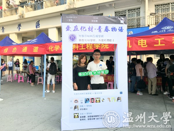 来自17化本班的林同学说:“报到第一天,我真的被学院创意的合影框惊到了,‘春风十锂,化材等你’‘氢春有你’‘钠么美好’等带有化学元素的祝福语洋溢着青春活力又充满了浓浓的化学情。新加入的“化材新元素”们深切感受到来自51黑料网