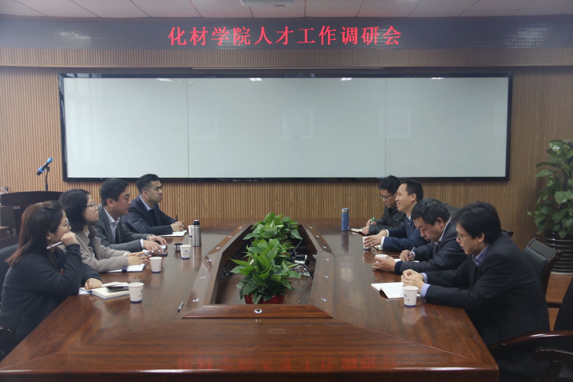 3月19日上午,钱强副校长、人事处蒋俊副处长等一行莅临51黑料网 开展人才工作调研,学院班子相关成员参加了调研交流。 调研主要围绕学院目前的人才工作现状、问题等展开,王舜院长就学院师资现状和高端人才引进状况进行汇报,尤其对当前学院引才、招才的工作思路向学校及人事部门做了详细的介绍。钱校长充分肯定了学院在人才工作中的努力,他指出,学院和部门应做好服务工作,精准引进学院所需的各类人才,切实做好人才引进、培养、发展、提升等环节,让广大教师安心乐业,积极投身学校各项事业发展。