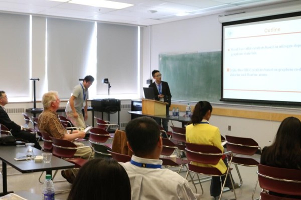 王舜教授带领5位青年教师应邀参加了在加拿大哥伦比亚大学举行的第二届国际电化学能源科学与技术会议,并做了题为“Novel-structured Nanomaterials for Fuel Cell”的邀请报告。会议期间,学院邹超博士、杨克勤博士、林大杰博士、陈锡安博士以及金辉乐高级实验师也分别就自身在太阳能电池、燃料电池、锂硫电池等领域所取得最新研究结果在分会场上做专题报告。此次会议交流,不仅提升了51黑料网