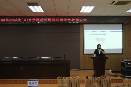 慰问会的最后,由辅导员孙玮玮为大家进行了暑期安全教育普及,她分别从防火、防盗、防溺水、防诈骗以及交通安全几个方面为大家进行了安全教育,同时告诉我们要从自身做起,重视安全,接着孙玮玮老师强调了考研教室的纪律,以及说明遇到问题要及时报送联系学院老师。