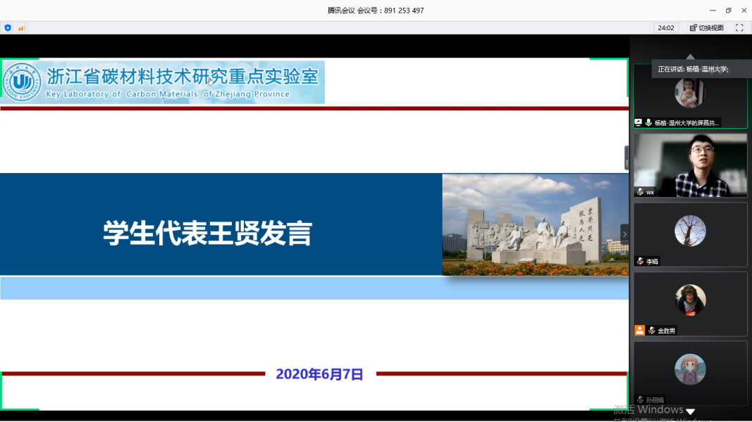 6月7日,浙江省碳材料技术研究重点实验室举行了第八届“科研之星”线上颁奖典礼。实验室全体师生出席本次会议。