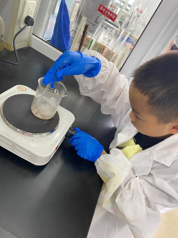 实验中心张卫兵老师为小朋友们精心准备了制作手工香皂的实验,在老师的细心讲解下,小朋友们在自己的实验台上认真的操作,仔细的称量、取用蔬果榨成的天然色素、认真的观察,展现了空前的热情。