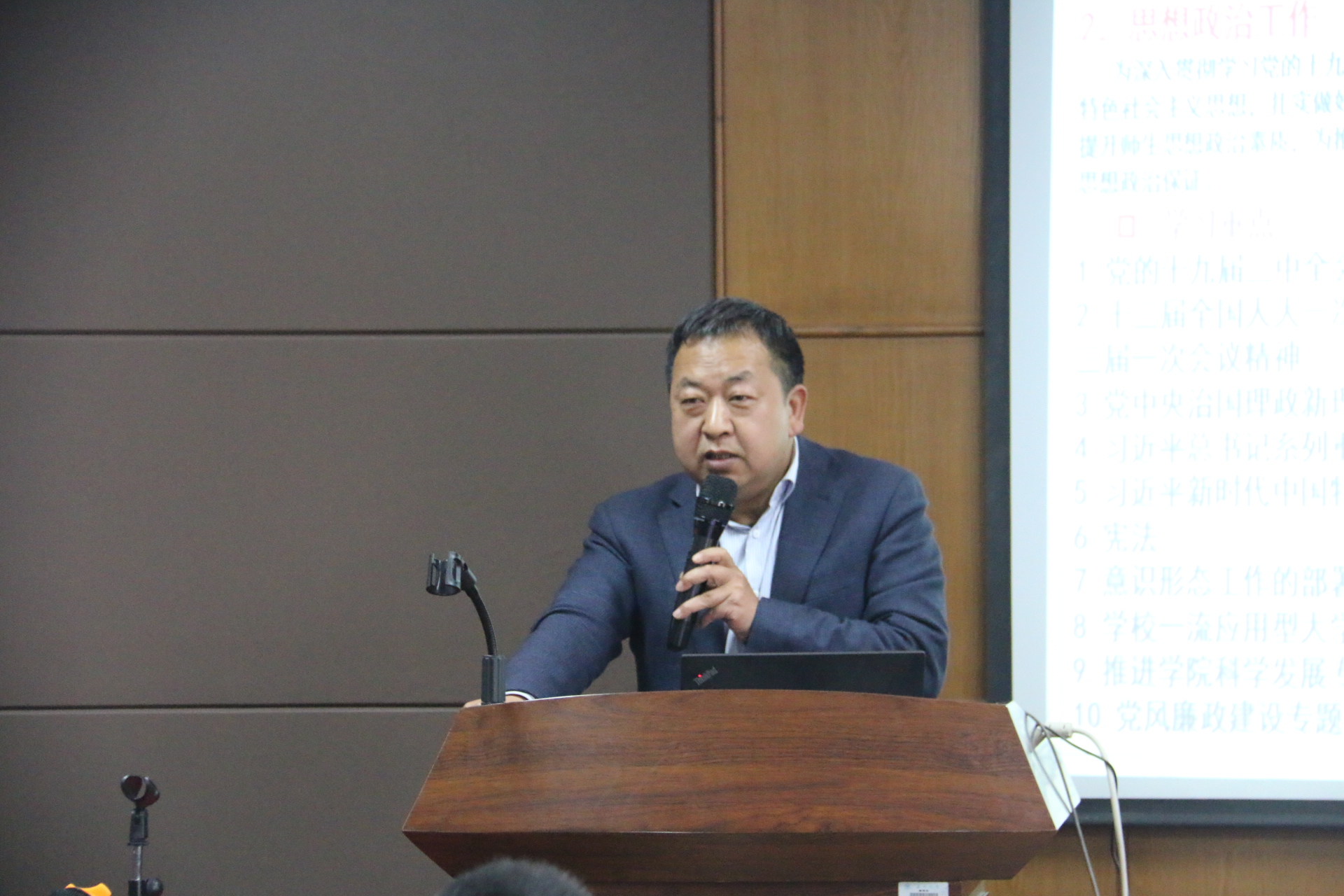 会议伊始,王舜院长首先明确了本学期学院整体工作任务和目标,落实工作措施和要求,并要求全体教职工上下同心,求实务实。王院长指出:学院需要重点开展博士点培育建设,整合资源,努力提升学院ESI排名,同时要加强教学建设,促进校地合作和产教融合,为推进学校建设成高水平应用型学校奠定了良好的基础。