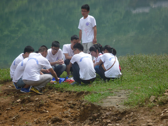 上午8:00分,队员们集合一同前往大罗山进行取水,沿路欣赏山上美丽的风景,漫长的山阶在队员们的欢笑声中不断后移。终于队员们来到位于大罗山山顶的龙王水库,由调研组成员负责采集水样,并利用随身所带的化学试剂当场进行快速检验。宣传组成员全程拍照,其余队员认真的看实验操作过程。检测的指标包括:氨氮含量,磷酸盐含量,铬(VI)含量,溶解氧含量,化学需氧量(COD),待反应结束后与标准比色卡进行比较,纪录检测结果。队员们还另取部分水样准备带回实验室进行精确检测。之后,队员们又对大罗山山脚下溪流中的水进行检测并采集水样。11:00分,队员们带着所采集的两份水样回程。下午13:30分,指导老师马建华安排了实验室检测水质具体项目,向队员们强调了各个小组的注意事项,并询问了实践队宣传方面的事宜以及近期的行程安排。