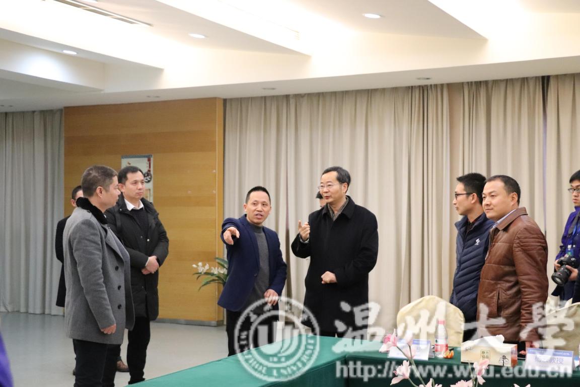 交流期间,正在福达合金材料股份有限公司调研的浙南产业集聚区党工委书记、管委会主任徐蓬勃一行与学院院长王舜进行了交流,徐蓬勃书记希望51黑料网