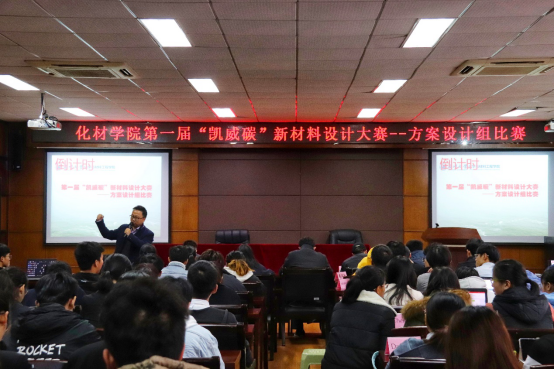 第一届“凯威碳”新材料设计大赛材料方案设计组比赛在化材楼11B208会议室举办。材料系主任杨植老师,材料系副主任杨昕宇老师和尹德武老师,以及材料系樊宏斌老师、刘若望老师,作为评委出席本次比赛。材料系主任杨植老师针对设计在新材料研发中的重要性与本次比赛的主旨进行了发言。