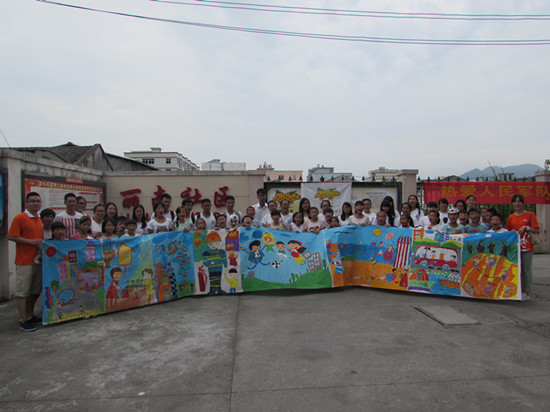 教授王稼国老师讲话,王老师提到,相比实践前,队员们都有了很明显的进步;最后是队长胡君美发言。在胡君美简短的发言后,文艺汇演正式开始。此次表演的主角是丽岙三小的孩子们。孩子们准备了很多节目,有舞蹈,独唱,歌曲串烧等等,形式丰富,中间还穿插三个队员们的单独表演。最后演出以孩子们一支华尔兹顺利落幕。