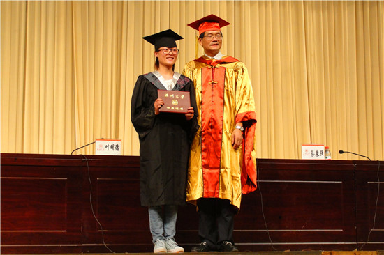 最后,蔡袁强校长站在台上为每一位毕业生为毕业生授予学位及毕业证书、拨流苏并合影留念。经过毕业典礼,毕业生们会更加坚定地在社会上拼搏,并向在场的优秀校友们学习,以自己的傲人之绩,让母校以己为荣。