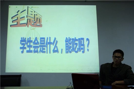 说到“吃””就少不了“聊”,接下来,学生会副主席周基政将轻松的氛围进行到底,好好地和大家做了自己的分享。团副说,在边吃边聊的过程中,他学到了为人处事、学到了工作该有的态度、学到了太多课堂上学不到的东西。这也许就是学生会所带给我们的变化。学生会是个大家庭,是为全院学生服务的大家庭,大家像家人们一样团结在一起,为学生工作奉献自己的一份力。主席李慧静说,为什么她会在学生会里一待就是三年,还有团副们也是选择继续留下,不为别的,就是因为舍不得,他们想为学生会负责到底。