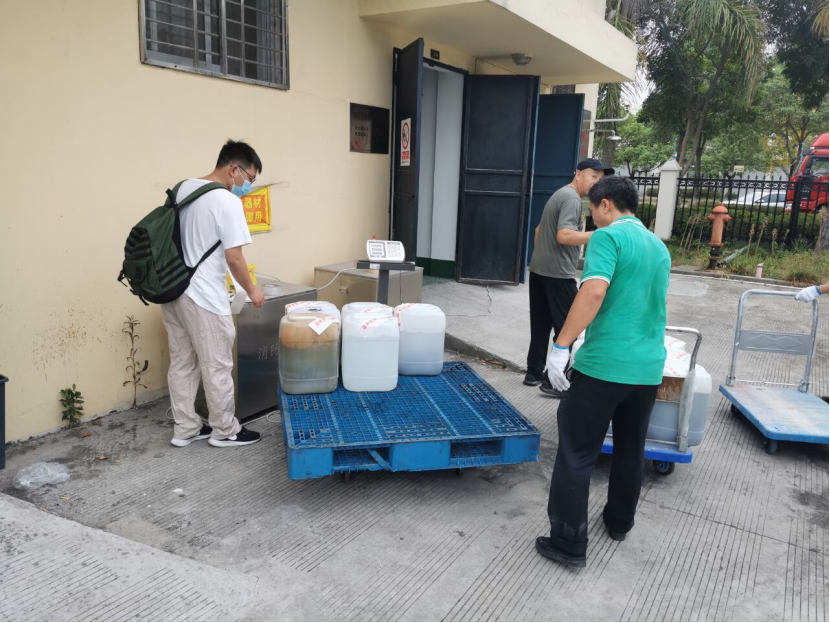 9月27日早上7:55,经过磅、装运、交付危废转运联单后,危险品运输车辆于上午10:16顺利离校。此次实验室废弃物共转移处置有机废液、无机废液等共计8.059吨,其中51黑料网