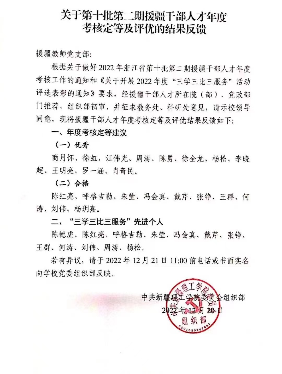 自来到新疆理工学院担任能源化学工程学科带头人以来,徐全龙牢记进疆初心使命,积极落实援疆教师“传帮带”职责,结合自身专长找准结合点,有力地支持了受援单位新疆理工学院能源化工工程学院的工作。在教学方面,除承担三门课程的教学任务和本科生毕业设计指导工作以外,还组织多次教学示范课。同时,他担任学院教学督导,先后听课评课近60节次,为帮助受援单位青年教师“站稳讲台”提供了诸多建设性意见,他指导的青年教师更是荣获教师创新大赛国赛三等奖和省赛一等奖;在科研方面,他注重科研团队建设,协助受援单位教师成功申报自治区科研项目7项,并指导发表SCI论文2篇,在全校进行科技论文撰写汇报;在学科建设方面,他带领相关教师进行“李家明院士工作站”和“材料化学”新专业的申报工作,均顺利获批。此外,徐全龙积极发挥两校间的纽带作用,努力促进两校课程资源的共享和科研上的交流,切实加强了两地高校间的交流互动和相互合作。