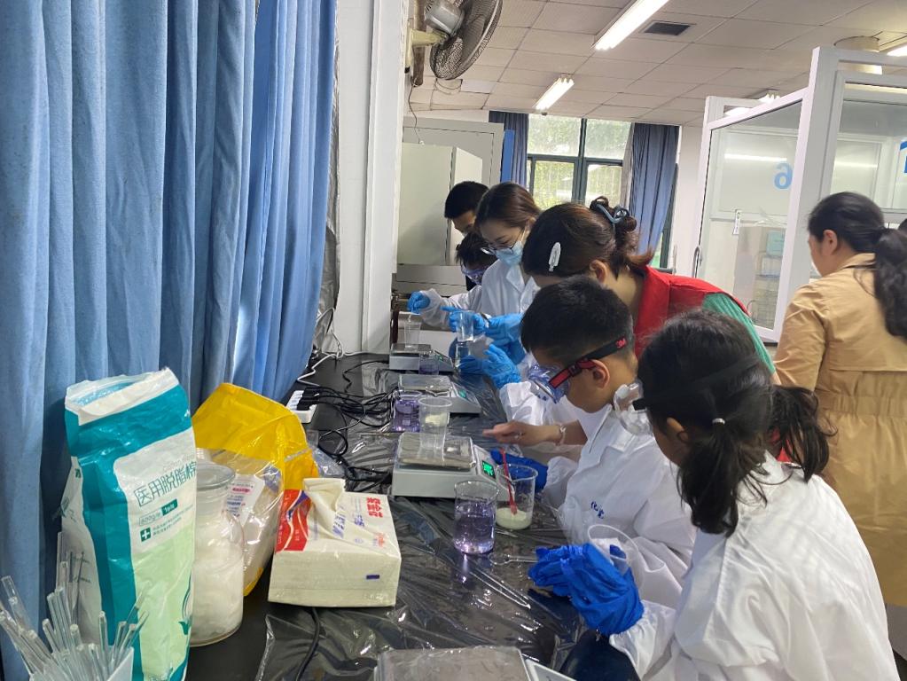 在夜光水晶制作实验过程中,现场各位同学实验专注投入,每位同学根据个人喜好,进行不同款式和色泽夜光水晶的制备,现场气氛活跃。在同学们的精心操作和和创意下,制备了书签、手镯、蝴蝶等各种各样的夜光水晶。