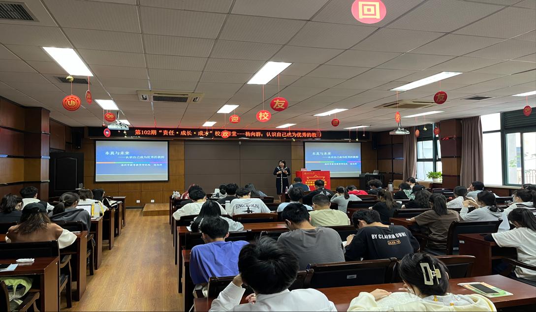 办学90周年,以优秀榜样校友事迹助推学院师范生高质量培养,更好服务学生成长成才。本期学院校友讲堂邀请到了83级化学专业校友、原温州市教育研究院书记、副院长、省特级教师杨向群老师,给学院师范专业同学带来精彩讲座。会议由教学副院长陈锡安主持。