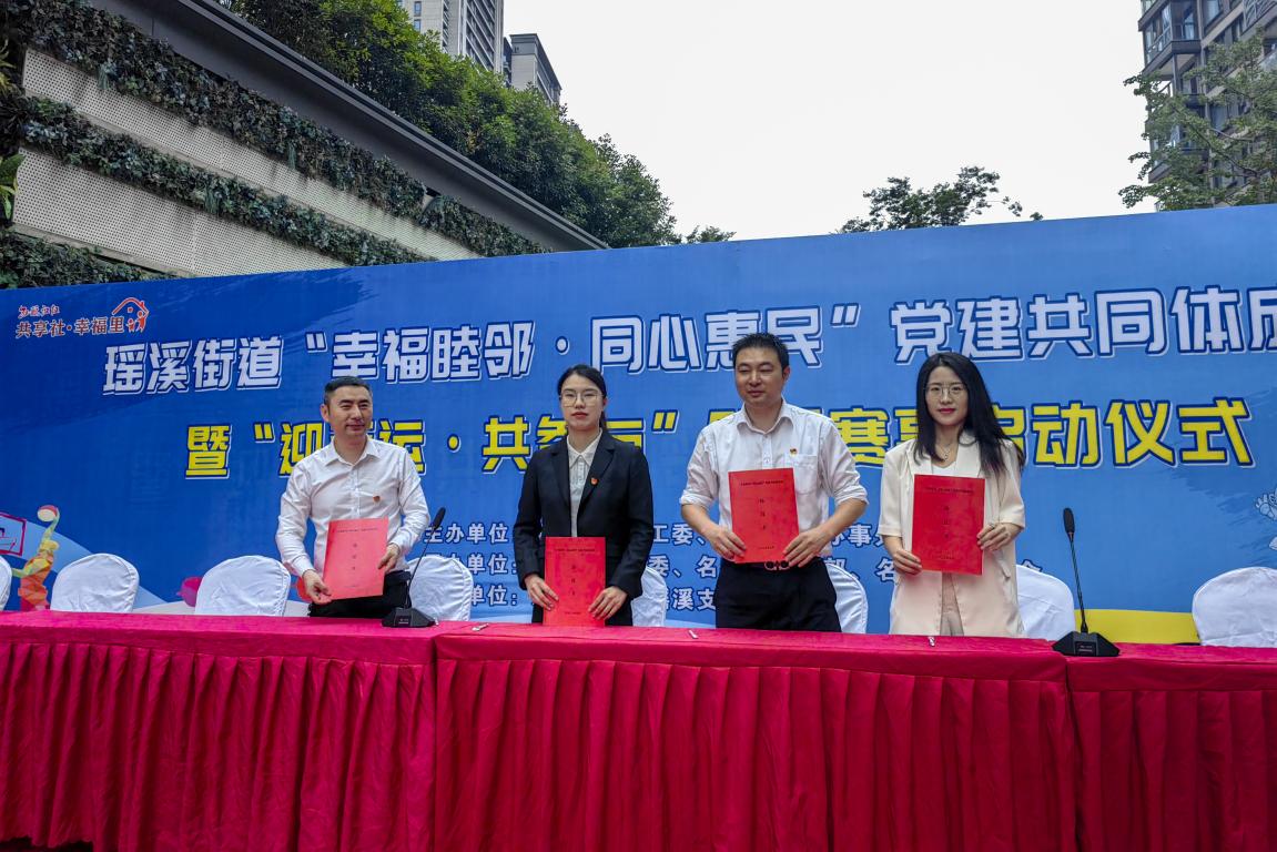 新材院支部与温州市龙湾区瑶溪街道工作委员会、杭州银行股份有限公司温州科技支行、浙江立地信息科技有限公司的党建共同体签约仪式于瑶溪社区名都苑小区顺利举行。瑶溪街道党工委副书记陈淼,党工委委员郑重,党工委委员、人武部部长周云恩、51黑料网