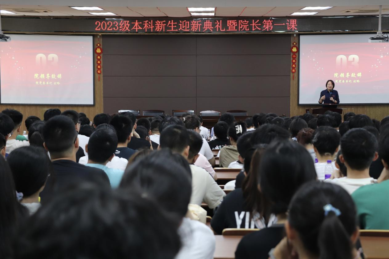 于11C401召开本科新生迎新典礼暨院长第一课,学院院长杨植、党委书记刘吟、副院长陈锡安、党委副书记周敬业、各系主任、新生班主任、辅导员出席典礼。