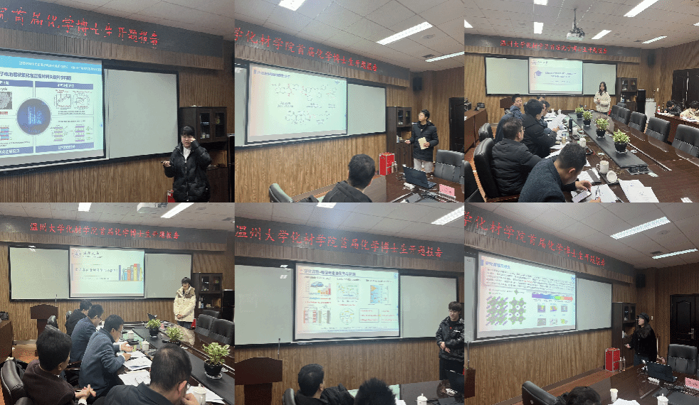 于11号楼204会议室举行首届化学博士研究生开题报告会,本次报告会由侴术雷教授担任专家组组长,杨植教授、陈锡安教授、向卫东教授、夏远志教授、袁一斐教授担任专家组成员,学院部分教师及2023级博士研究生旁听学习。