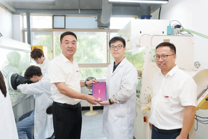 为打好基础,更好地开展博士生阶段的学习,陈志远在硕士毕业之后便申请提前进入课题组。在师友们的灼灼目光中,陈志远双手接过了这份沉甸甸的“礼物”,眼中是欣喜与坚定,“我将谨记杨植教授的指导,瞄准科研上的痛点,做“既能上书架,又能上货架”的材料。在浙江省碳材料技术研究重点实验室这么好的平台下,求学问是,敢为人先,把论文写在祖国的大地上,为‘强城行动’贡献自己的力量,做一名发光的温大人!”
