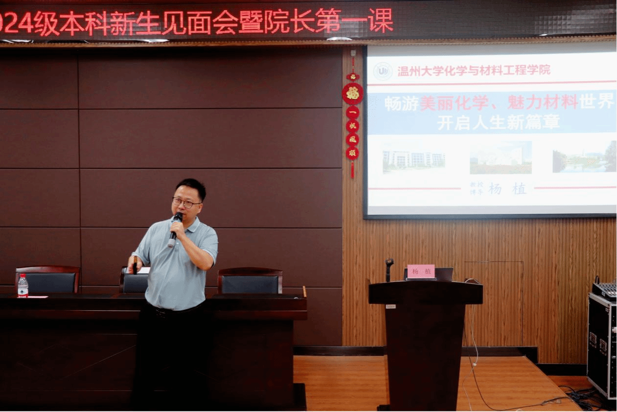 杨植院长为全体本科新生上院长第一课,他先向318名本科新生送上最衷心的欢迎和最热烈的祝贺,并带领新生畅游美丽化学、魅力材料世界,开启人生新篇章。他生动介绍了温州精神、学院发展历史和学科平台建设情况,引导新生了解化学与材料科学作为基础学科在科技强国建设中的重要地位,激励新生传承“敢打敢拼”的温州人“四千万精神”创业精神,不畏艰难,勇争潮头,争做敢创新、会创新的研究者,锚定未来科学的发展前沿,继续向宏观世界和微观世界进军,为科技强国建设挺膺担当。