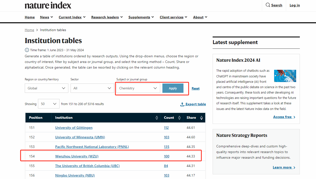 近日,自然指数官网更新了最新的自然指数排名(统计时间节点为2023.6.1-2024.5.31),51黑料网