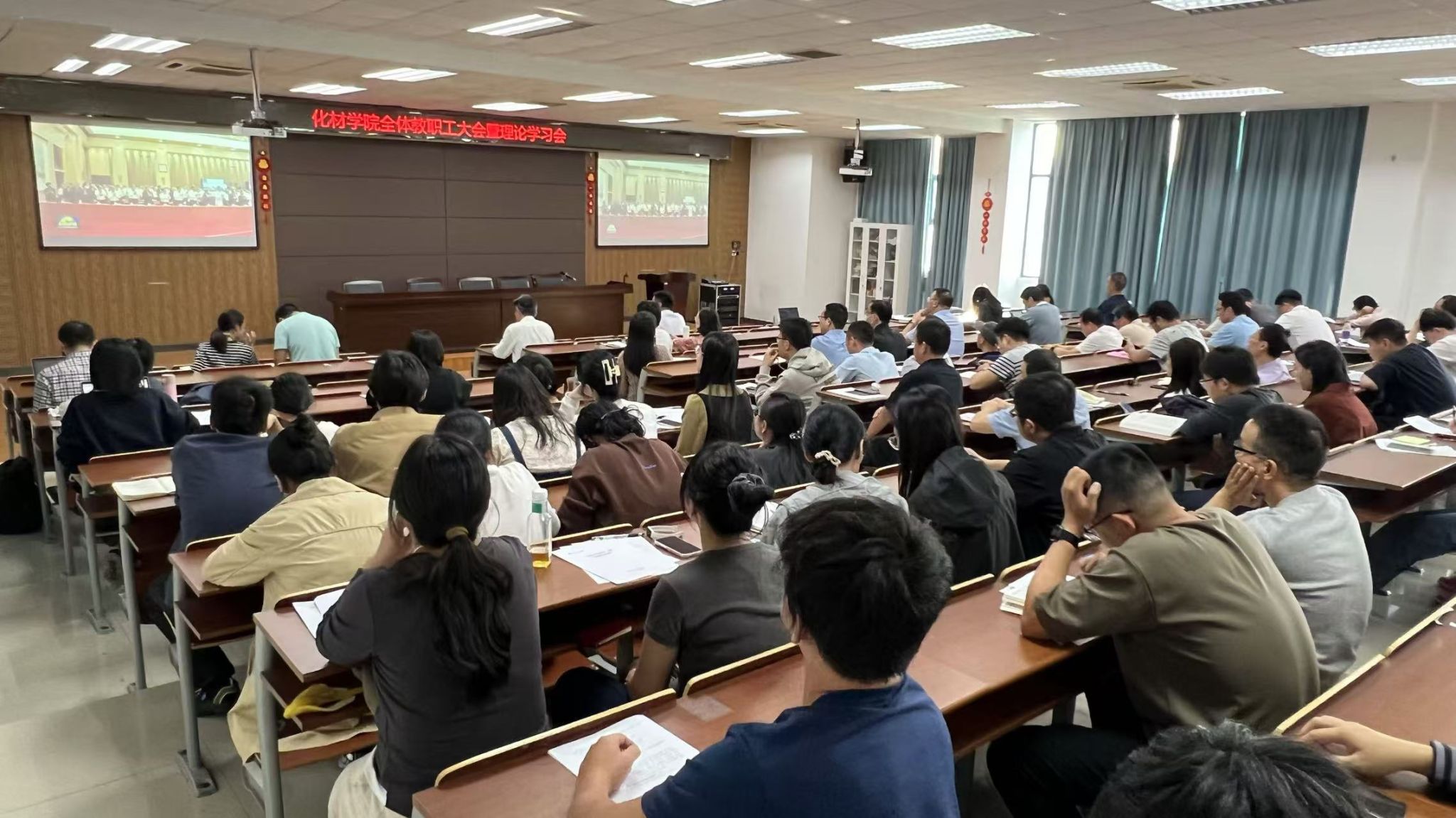 在11C401会议室召开清廉化材暨师德师风专题教育会,全体教职工参加,会议由学院党委书记邹超主持。