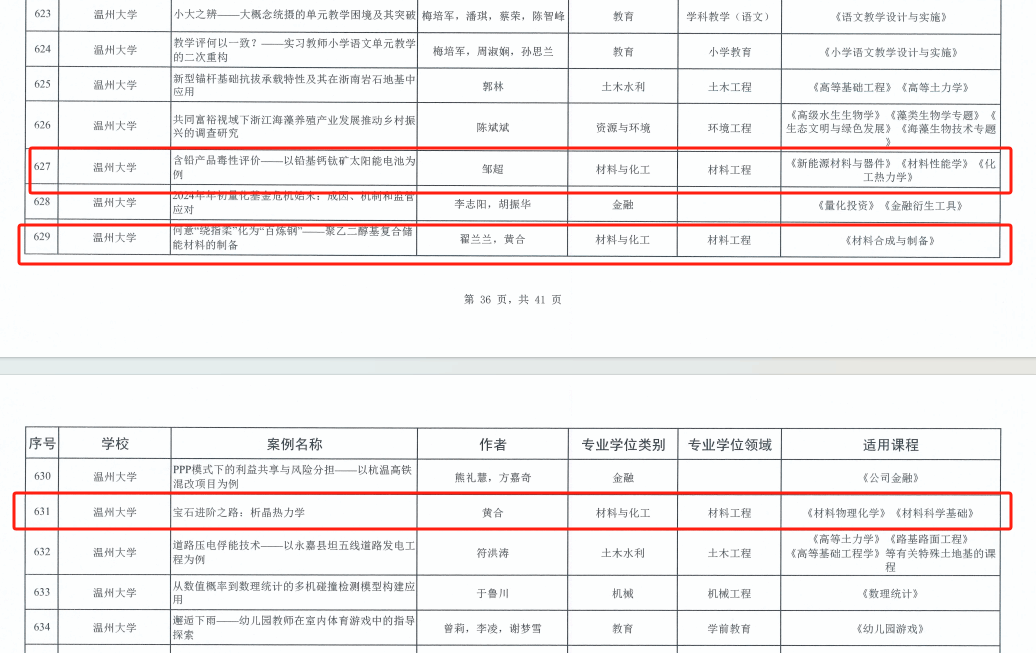 教师在材料与化工教学前沿领域的思考与探索。黄合老师聚焦热力学,巧用启发教学的方式,同时融入课程思政的元素,带领学生以“析晶热力学”探索“宝石进阶之路”;邹超老师重点关注生态环境议题,大力推广《含铅产品毒性评价—以铅基钙钛矿太阳能电池为例》教学,倡导广大学生以专业实践保护生态。“何意‘绕指柔’化为‘百炼钢’”,翟兰兰与黄合老师循循善诱,发动学生自主思考,探索聚乙二醇基复合储能材料的制备问题。