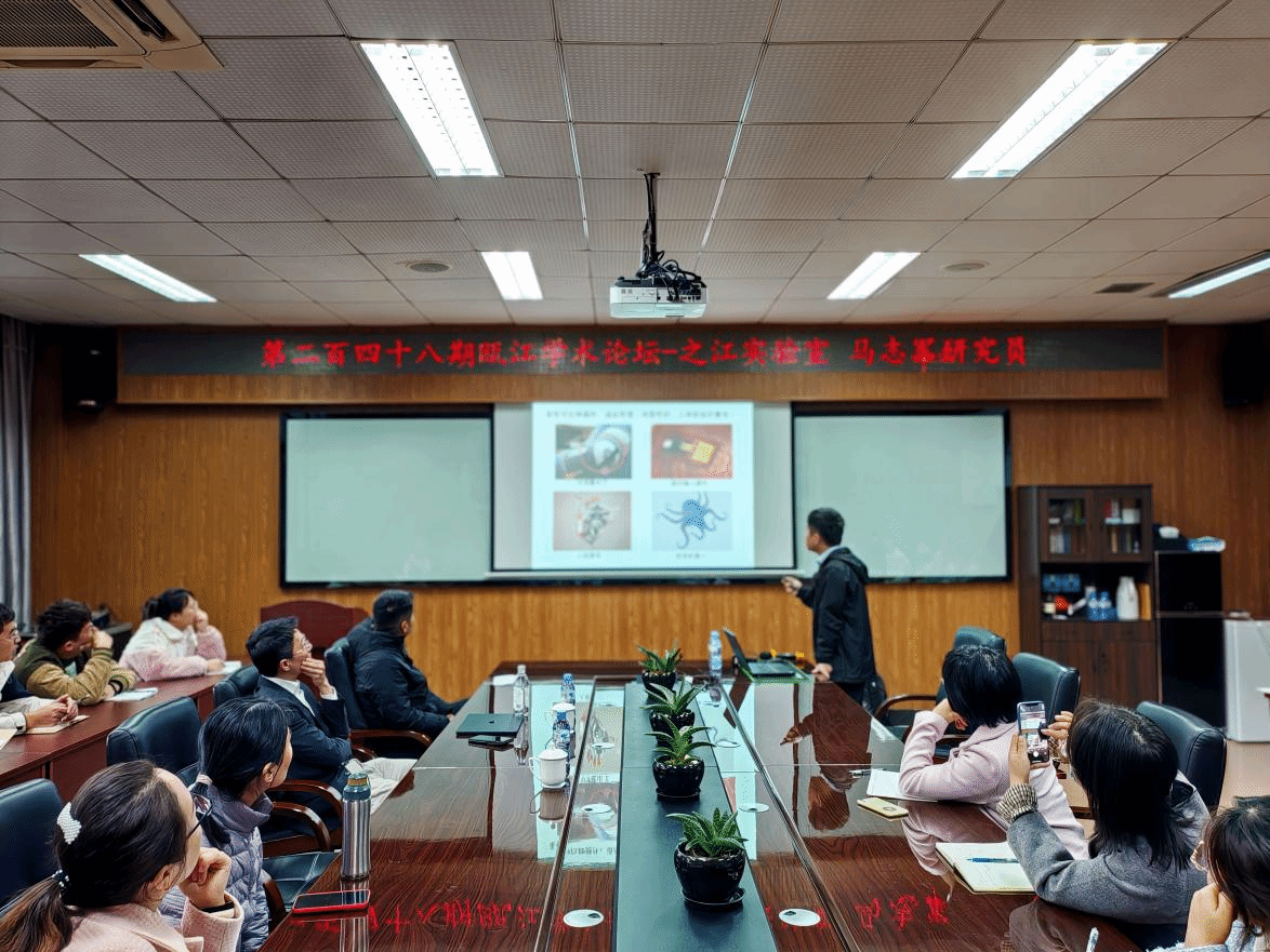 讲座结束后,马志军研究员与在座的师生进行现场交流。现场师生对于液态金属赋能的透气性可拉伸电子材料和器件前沿领域产生了浓厚的兴趣,参加的老师和学生提出了多个相关问题,马志军研究员对提问进行了详细解答,并同参会的老师进行了深入探讨。这次讲座让师生们对液态金属赋能的透气性可拉伸电子材料和器件有了更深层次的了解,激发了师生们对液态金属赋能的透气性可拉伸电子材料和器件的兴趣。