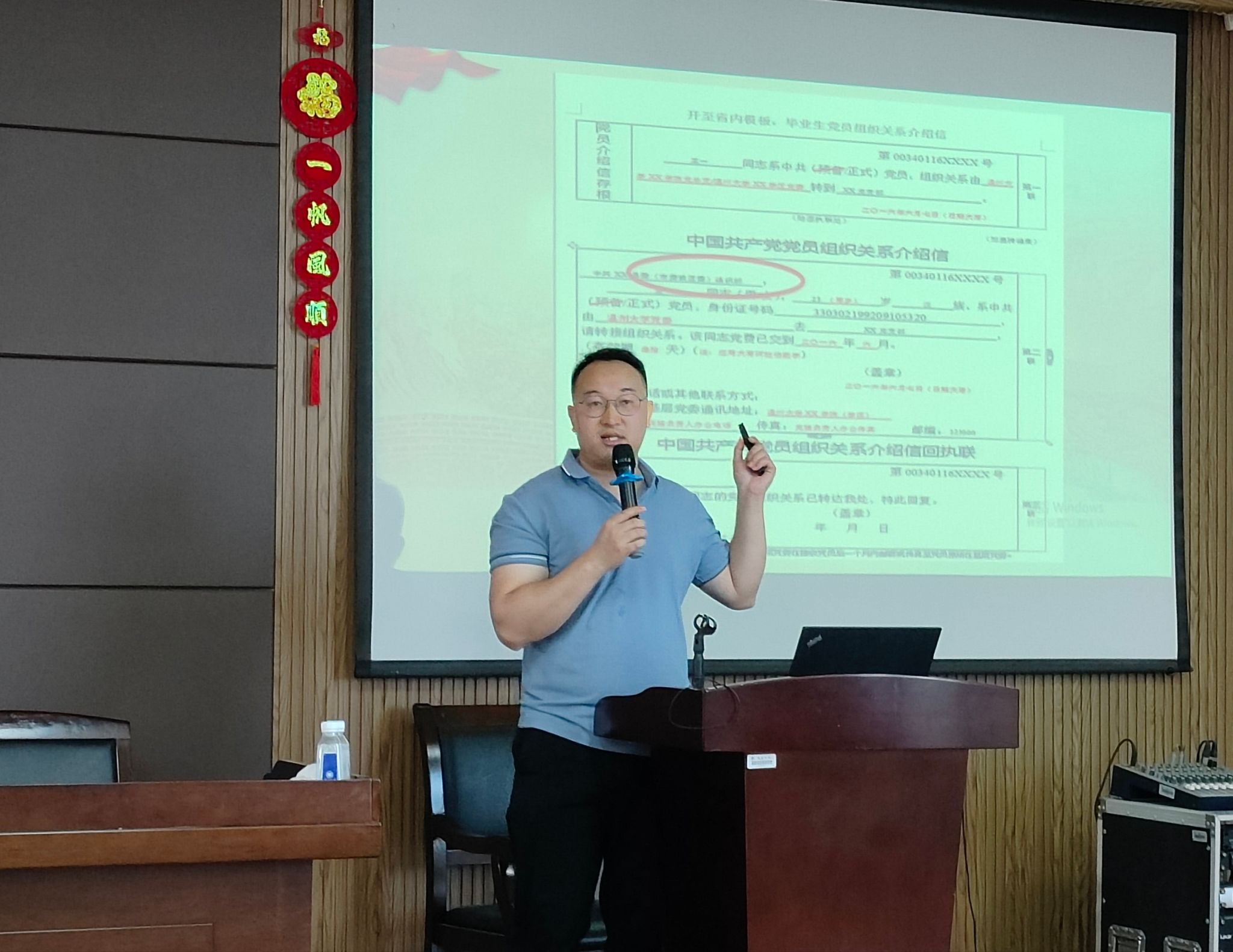 学工办邹涌彬老师重点围绕毕业生离校前后的安全问题以及毕业生党团员组织关系转接进行了详细讲解。他强调,当前网络诈骗、电话诈骗等常见诈骗手段形势严峻,提醒学生们应时刻保持高度警觉,切勿轻信陌生人的诱惑,要时刻守护好自己的个人信息和财产安全,立足当代大学生可能会遇到的非法利诱、拉拢等,结合当下信息时代的特点,教育引导同学们有效防范非法组织和个人的渗透,牢固树立马克思主义宗教观,坚决扛起铸牢中华民族共同体意识重大政治责任。