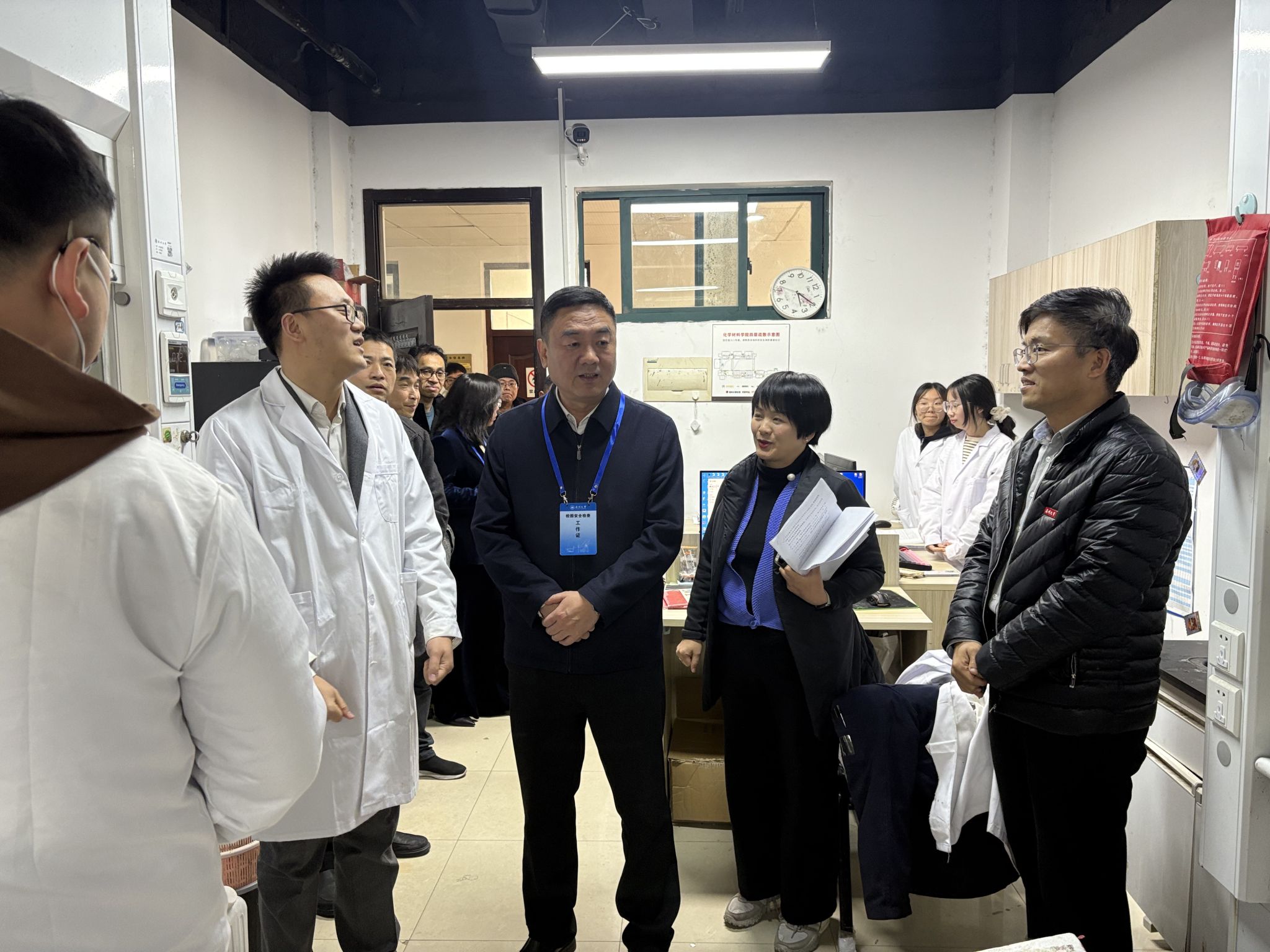 每到一处,钱书记一行仔细查看了解实验室关于仪器设备运行、安全设施配备等情况,并认真听取实验室负责老师关于科研进展、人才培养等方面的汇报。